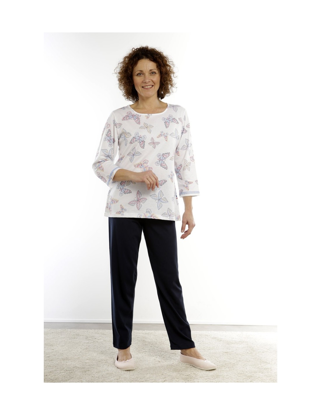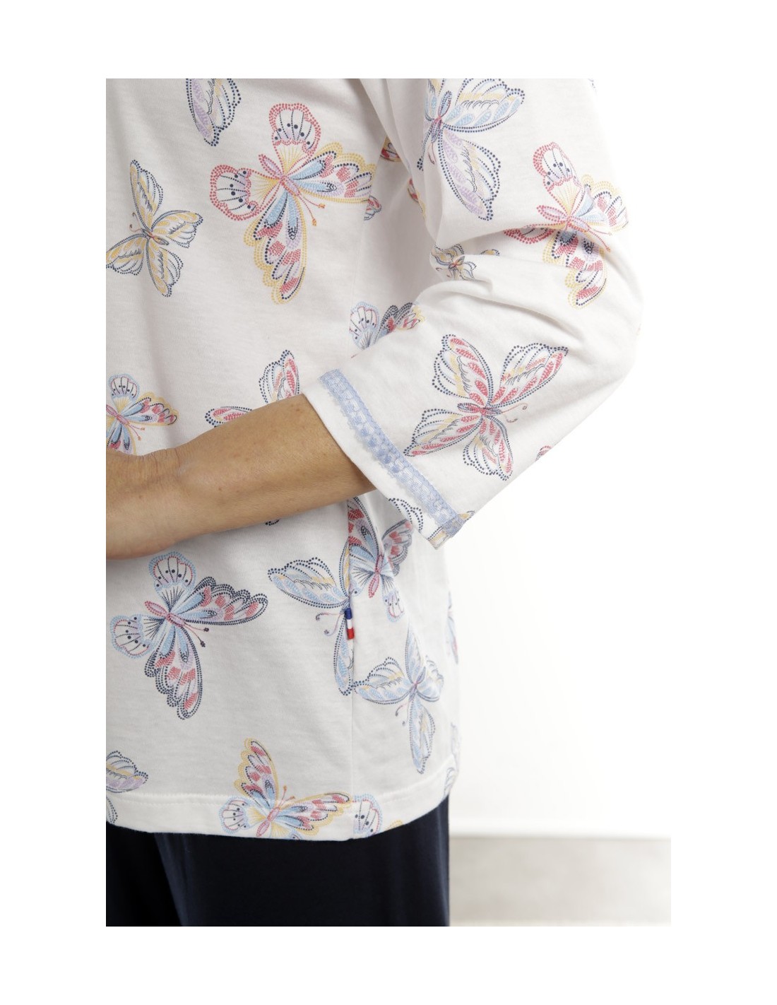 Pyjama RUBILA. Imprimé papillons. 2 pièces. Bas uni.