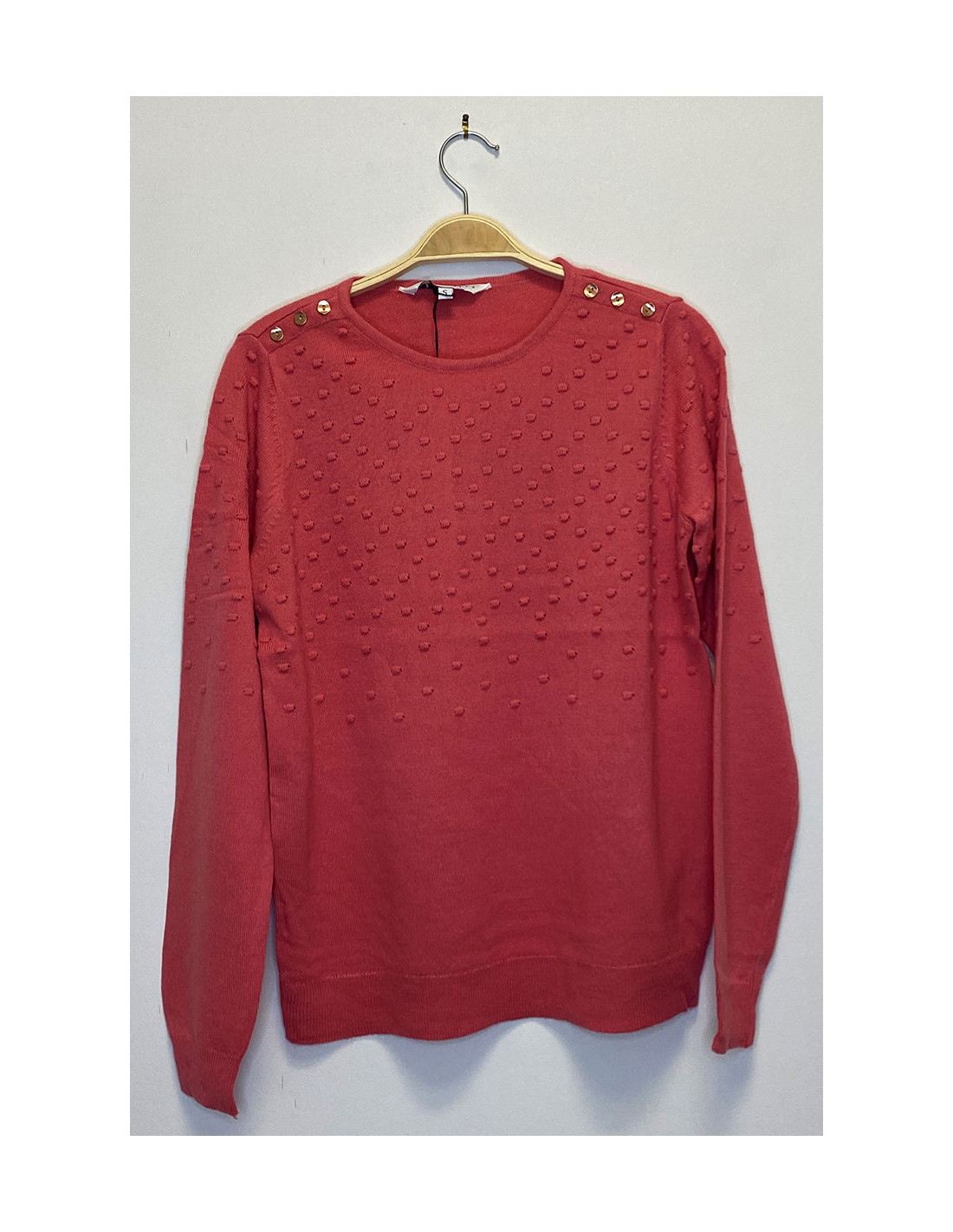 100% ACRYLIQUE. Pull femme Bojana. Fausse patte de boutonnage aux épaules.