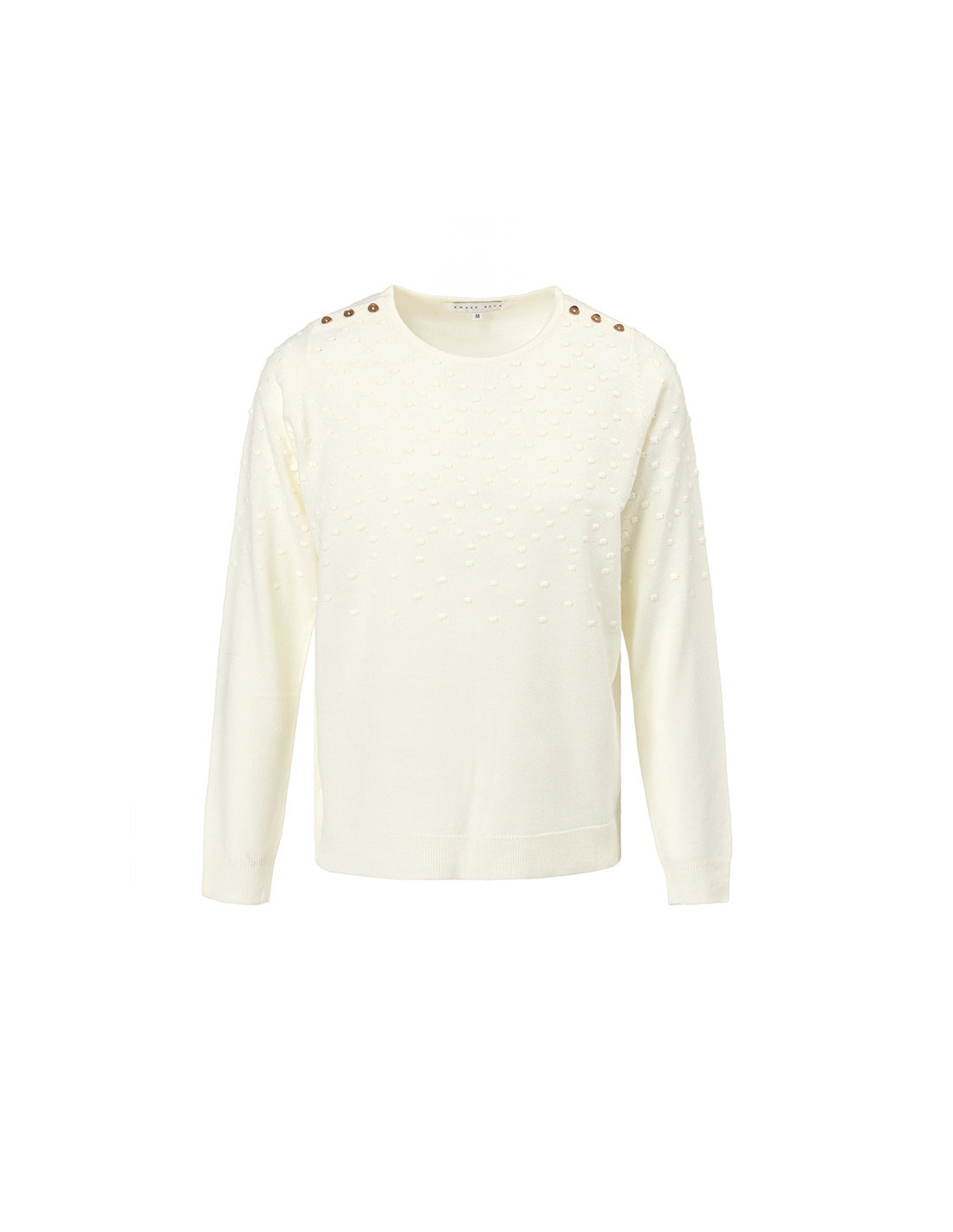 100% ACRYLIQUE. Pull femme Bojana. Fausse patte de boutonnage aux épaules.