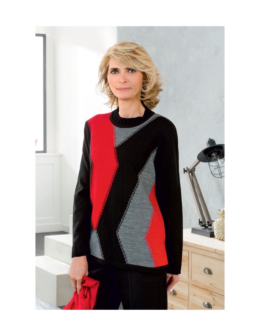 Vous adorerez le style moderne de ce pull aux motifs géométriques qui allie élégance et féminité.