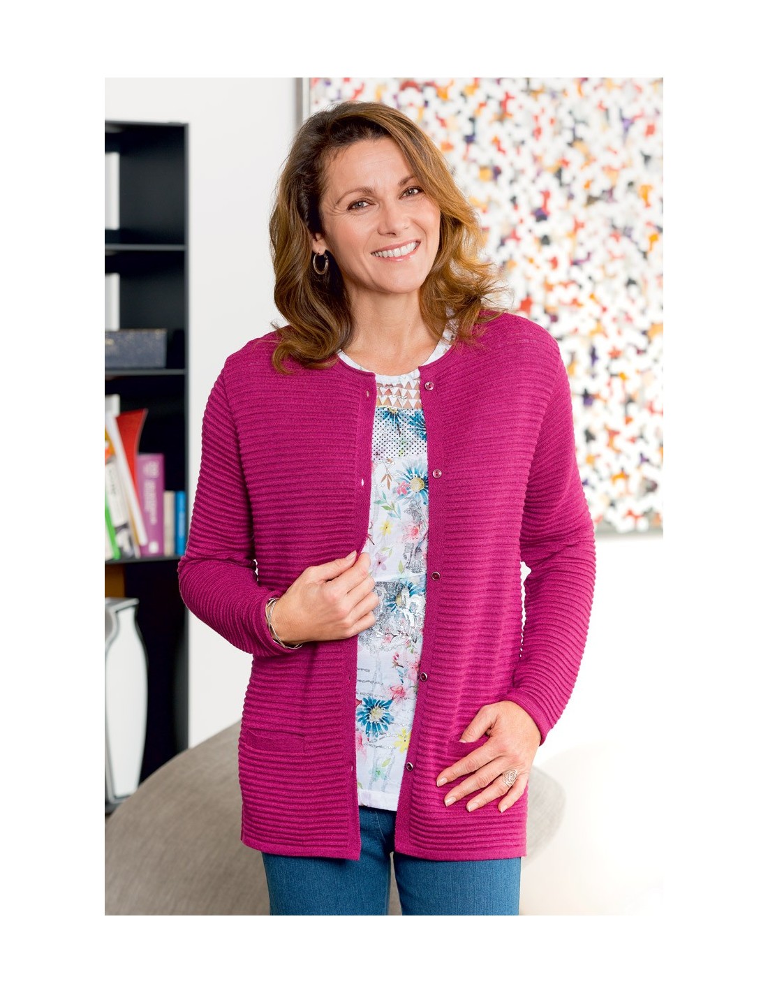 Gilet WARNE. Manches longues. Col rond. 2 poches. Maille fantaisie.