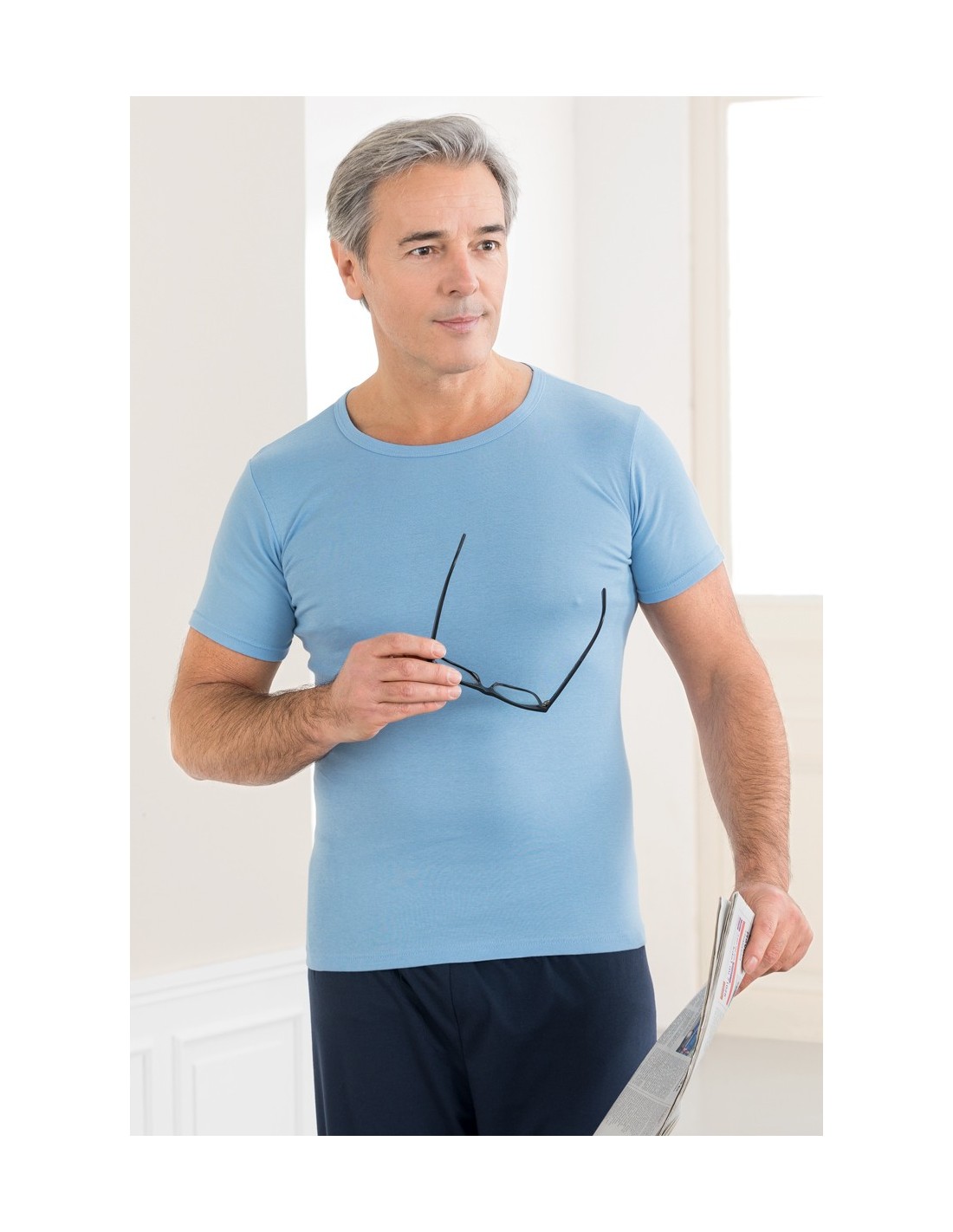 Lot de 2 tee-shirts coloris bleu ciel, manches courtes, encolure ronde. 100% coton.