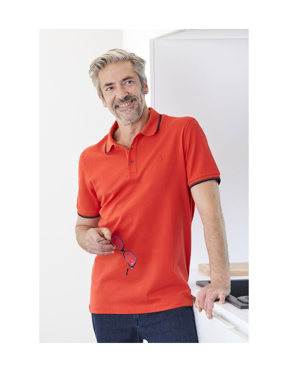 Une touche de modernité pour ce polo maille piquée avec fines rayures au col et aux manches. Facile d'entretien, 100% coton.